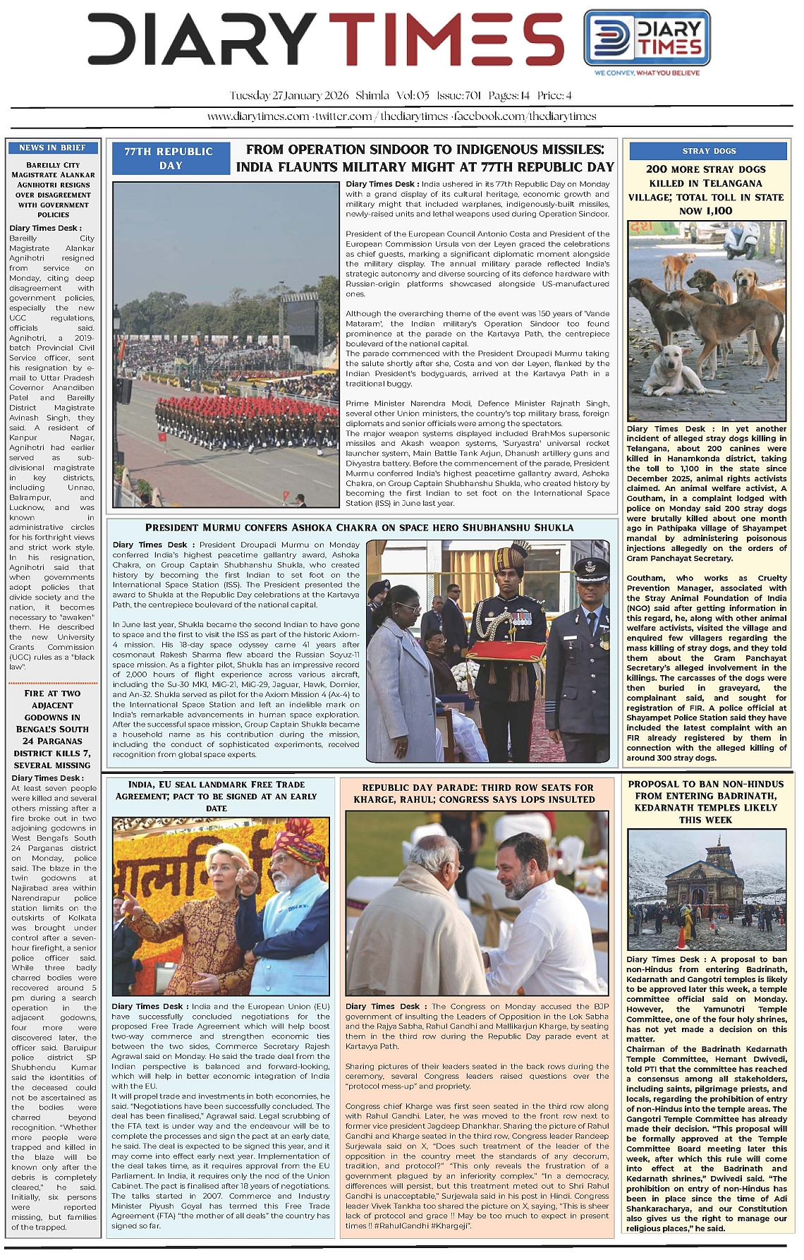 Diary Times 27 Jan 2026