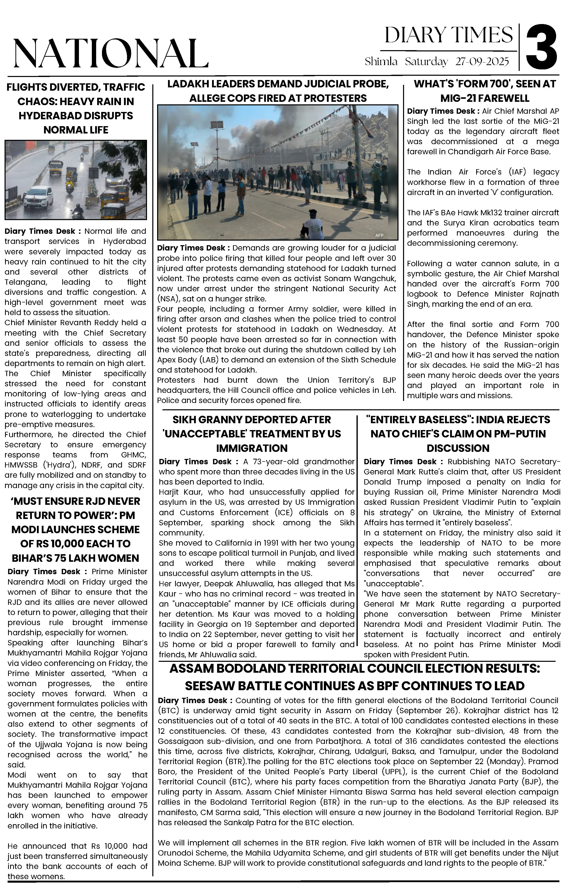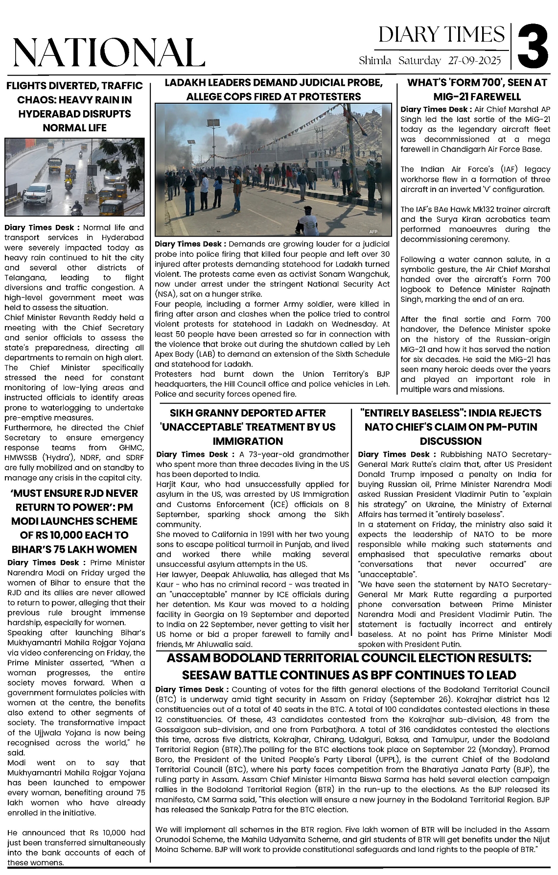 Diary Times 27 Sep 2025 Page: 3