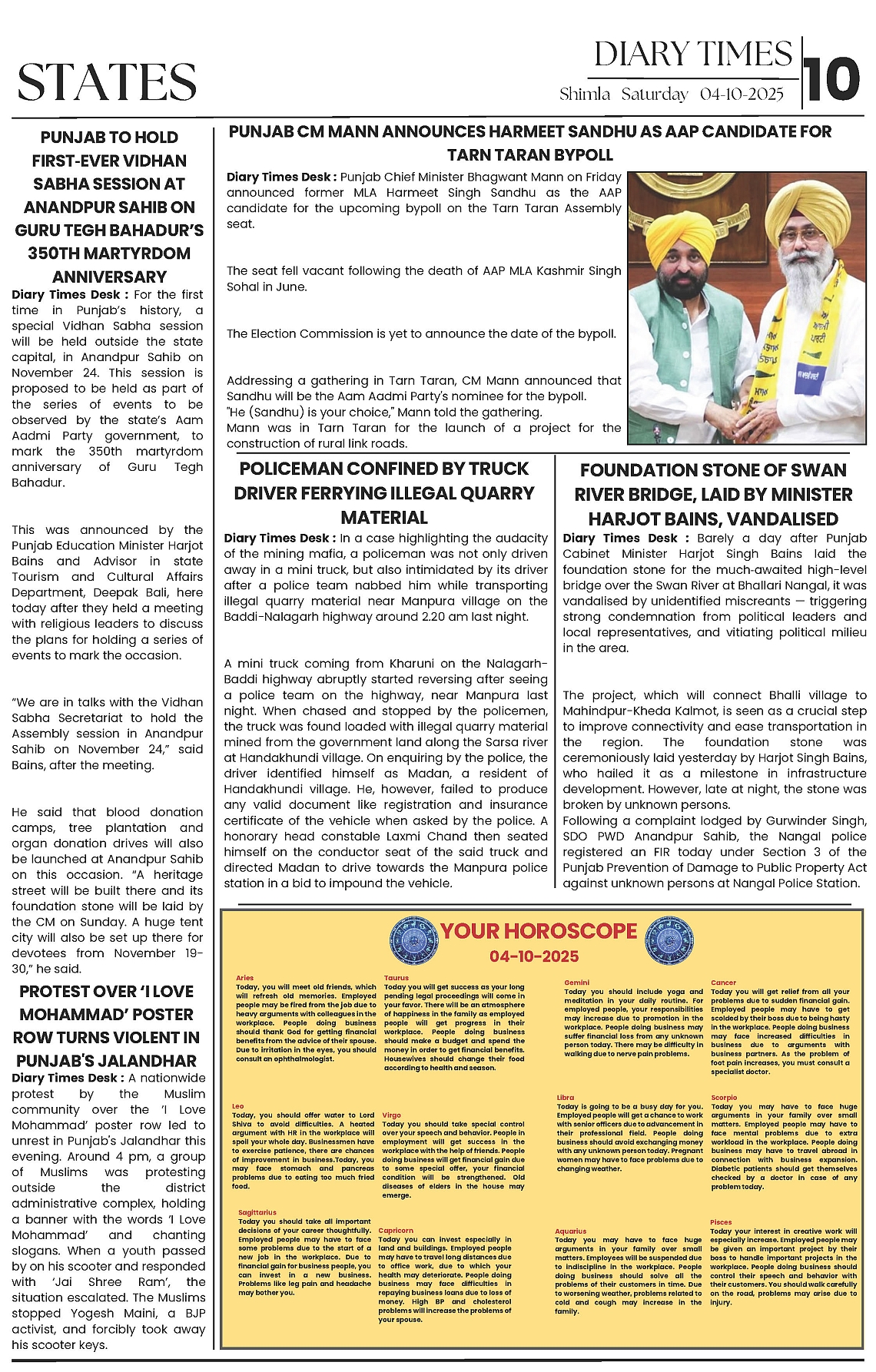 Diary Times 04 Oct 2025 Page: 10