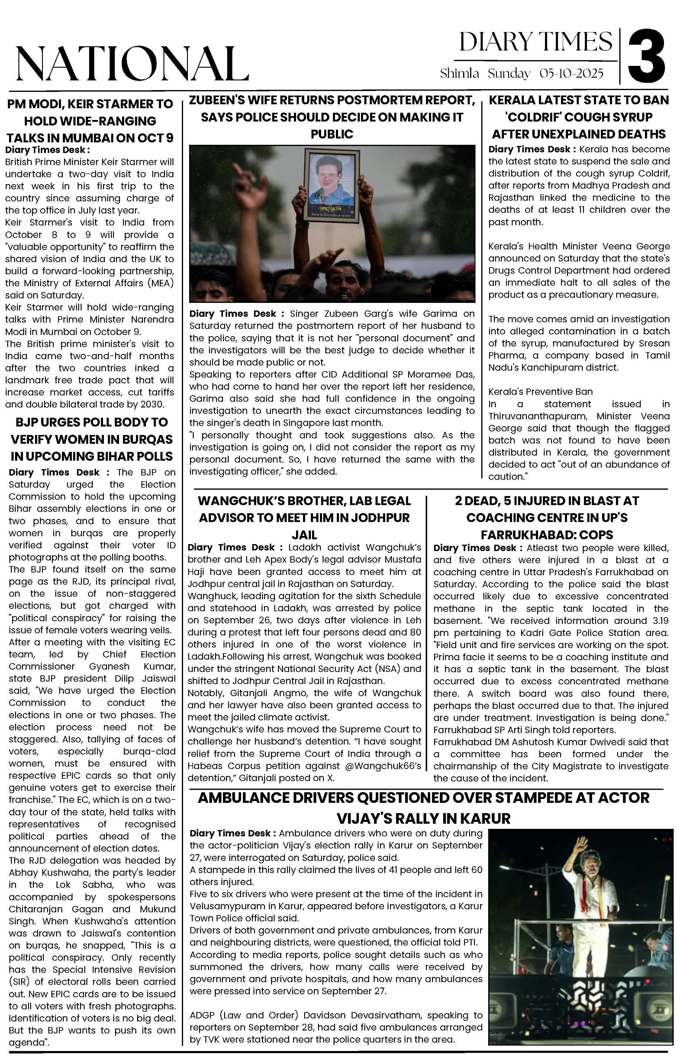Diary Times 05 Oct 2025 Page: 3