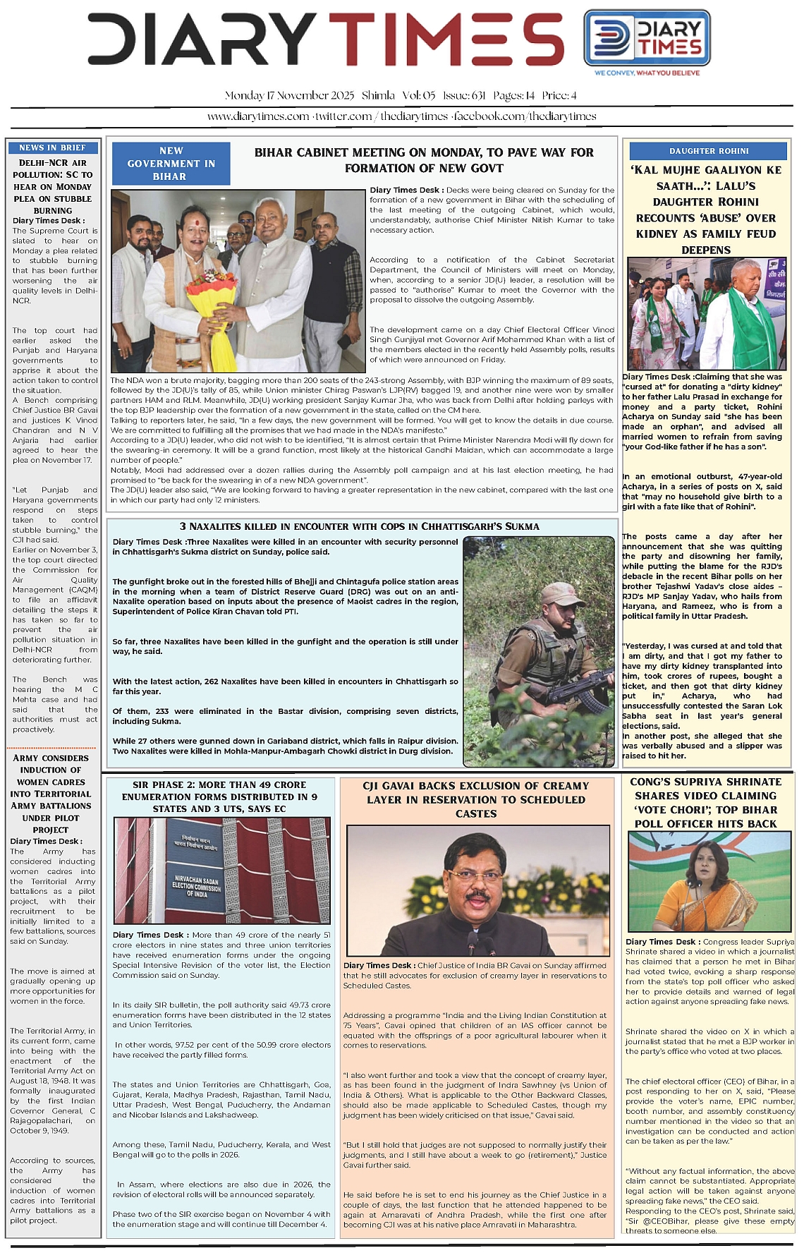 Diary Times 17 Nov 2025