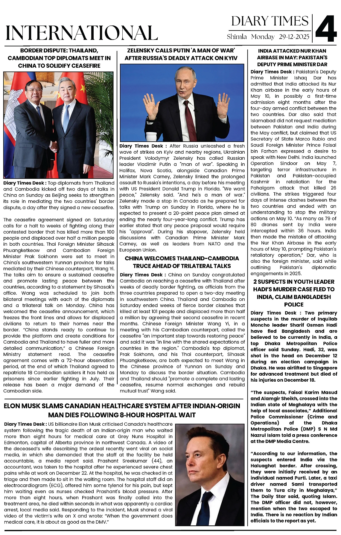 Diary Times 29 Dec 2025