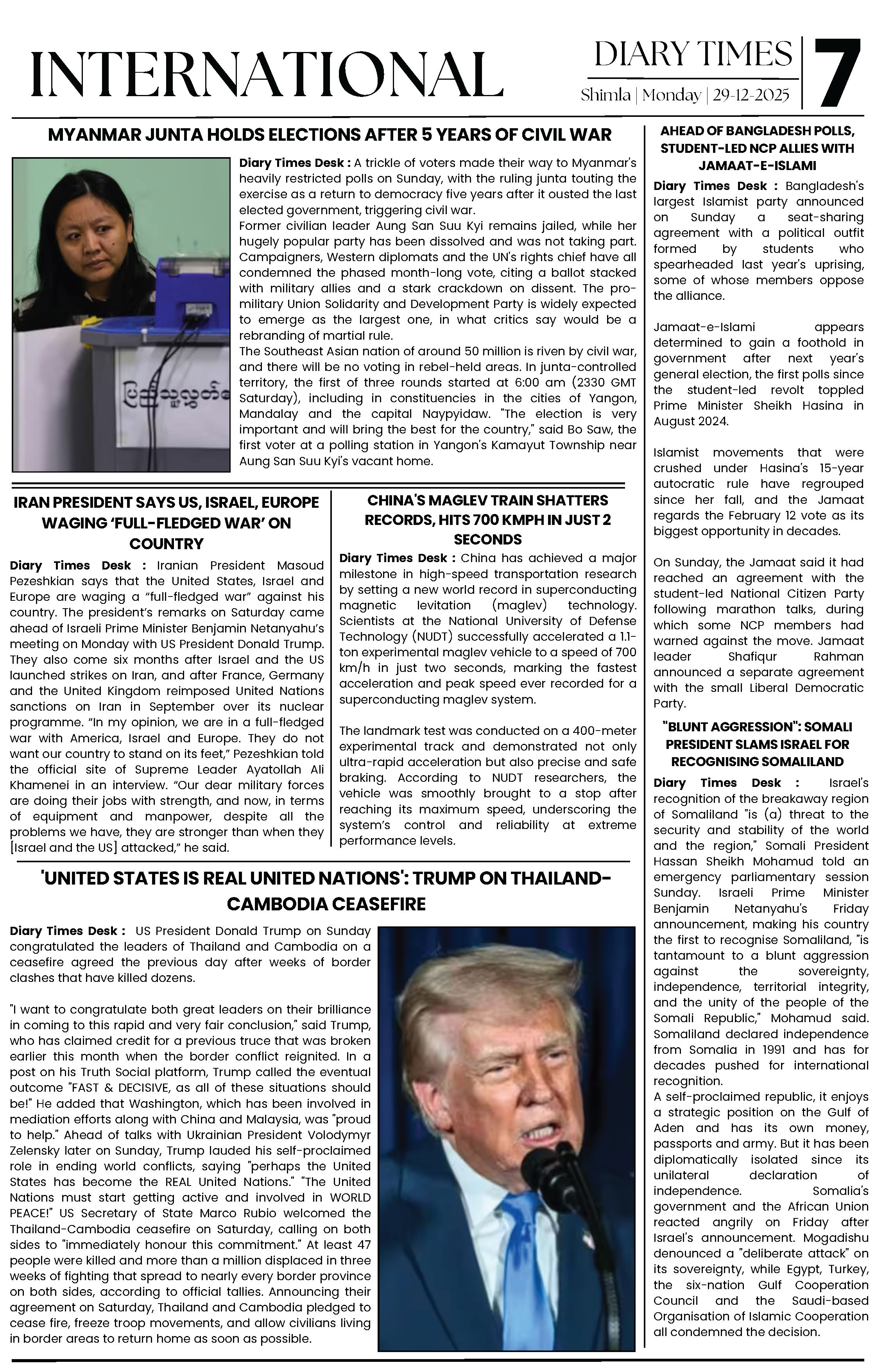 Diary Times 29 Dec 2025