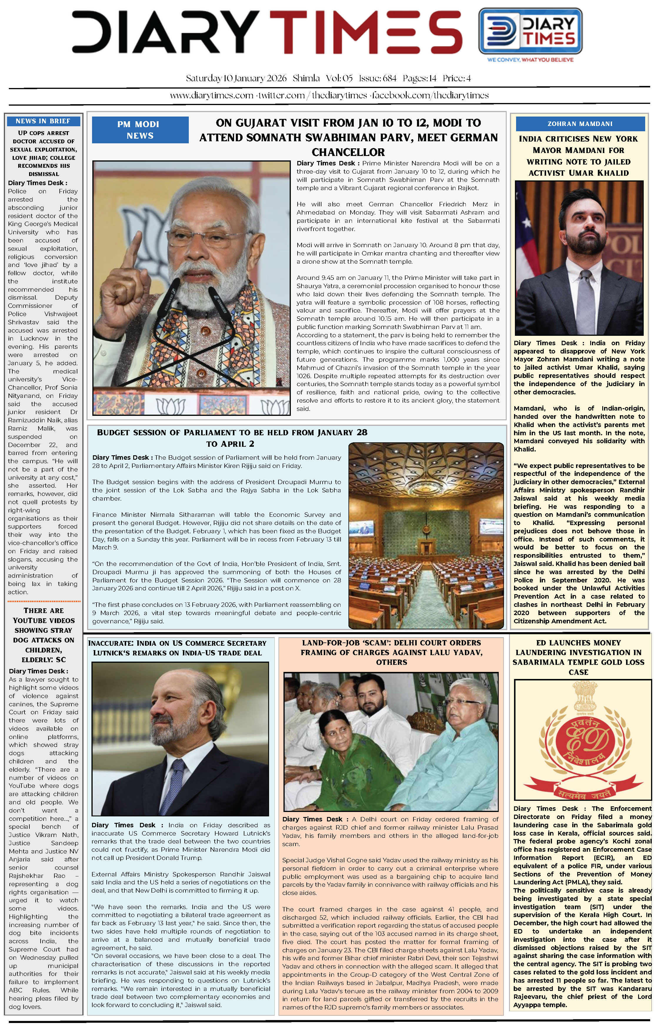 Diary Times 10 Jan 2026
