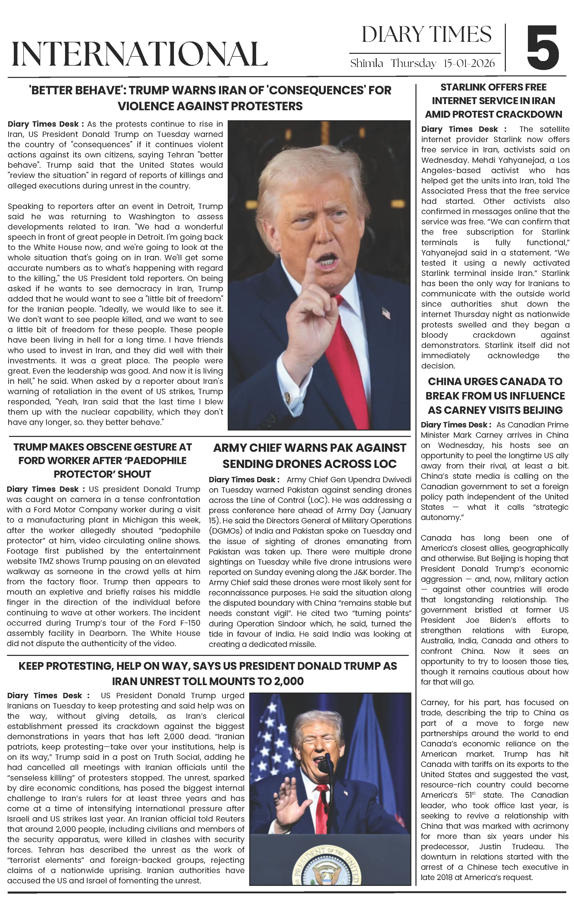 Diary Times 15 Jan 2026