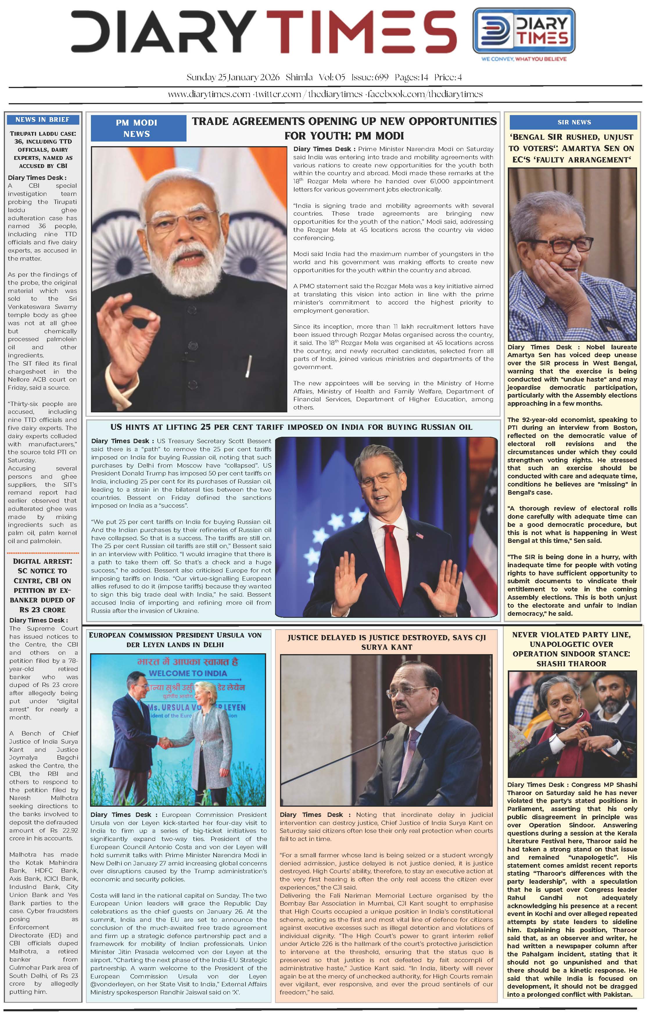 Diary Times 25 Jan 2026