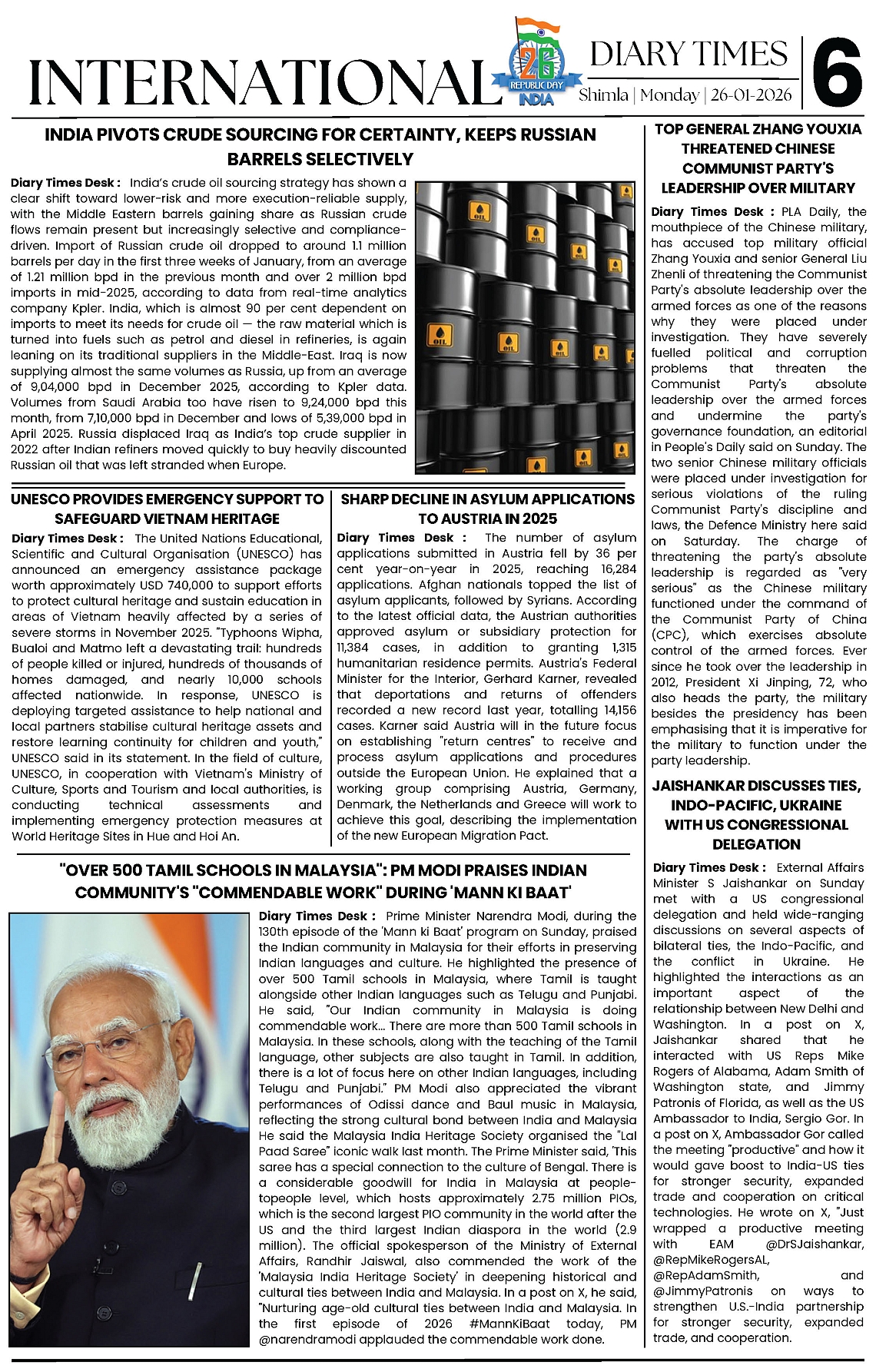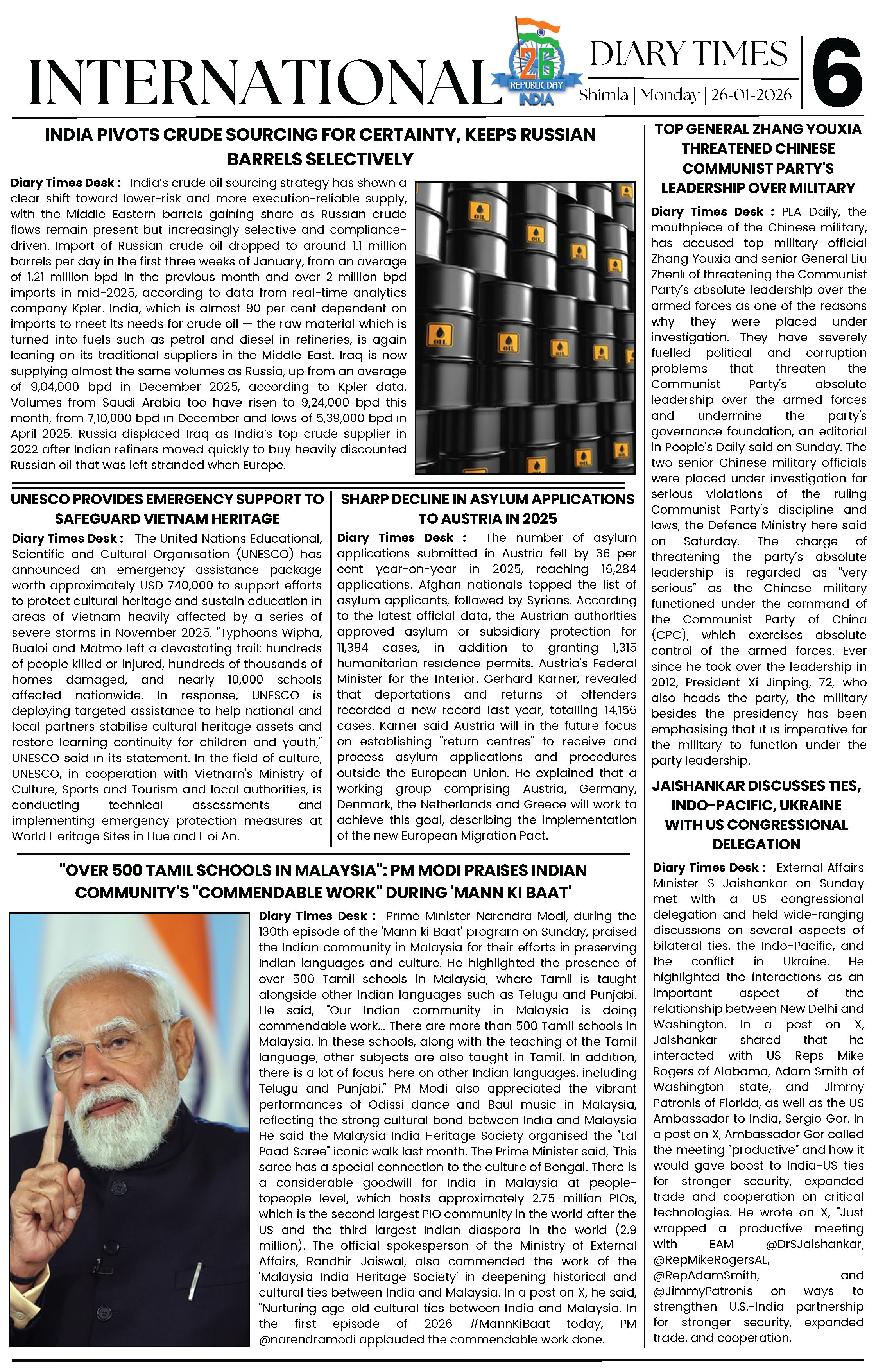 Diary Times 26 Jan 2026