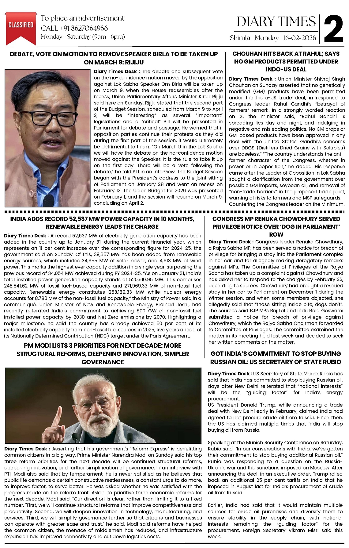 Diary Times 16-Feb-2026 Page: 2