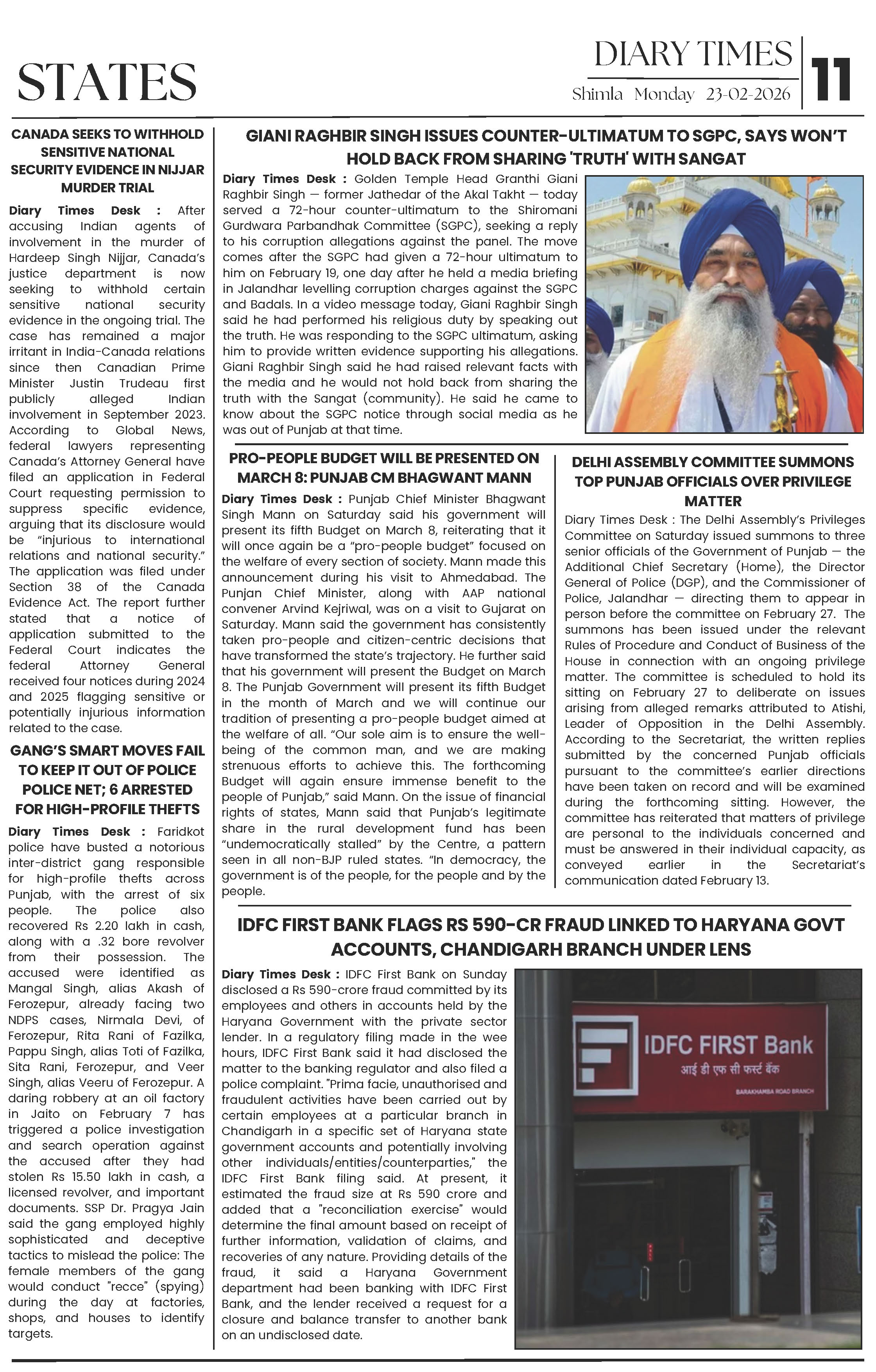 Diary Times 23-Feb-2026 Page: 11