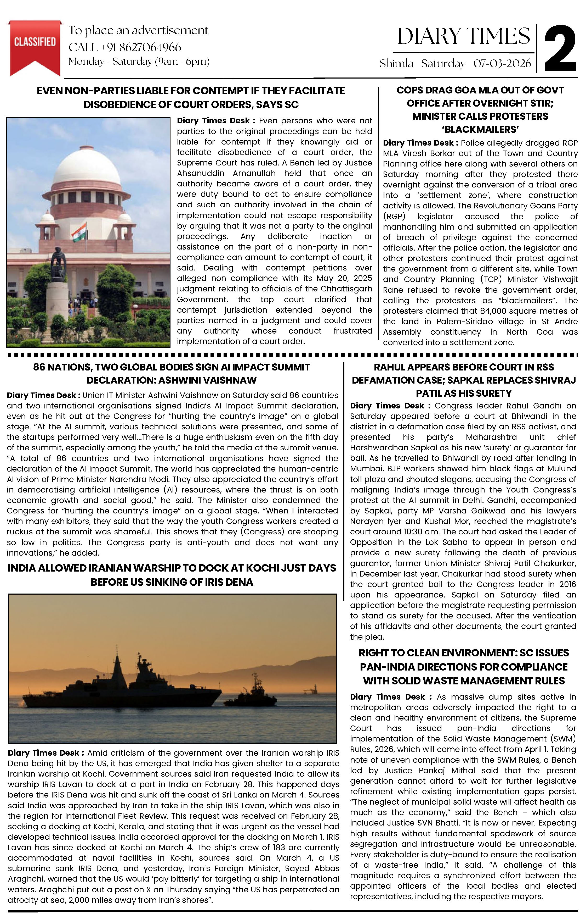Diary Times 07 Mar 2026 Page: 2