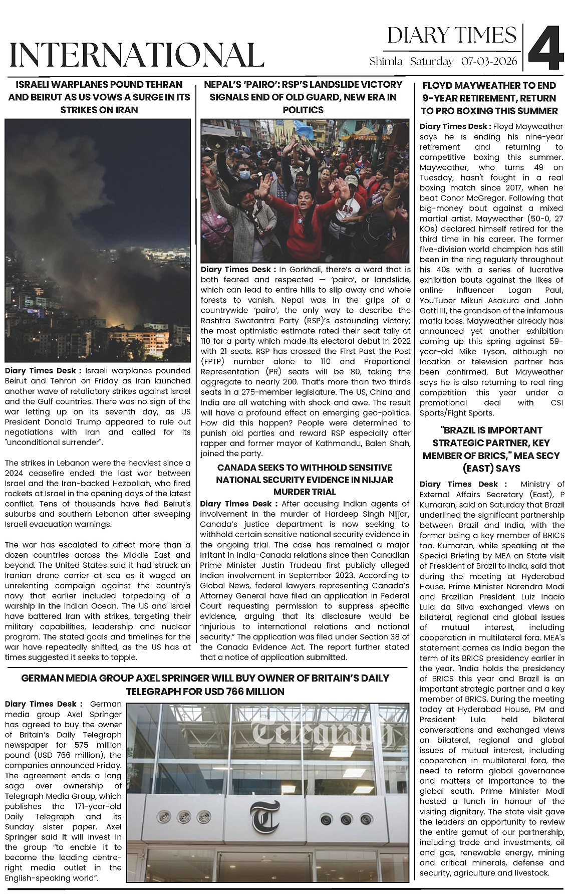 Diary Times 07 Mar 2026