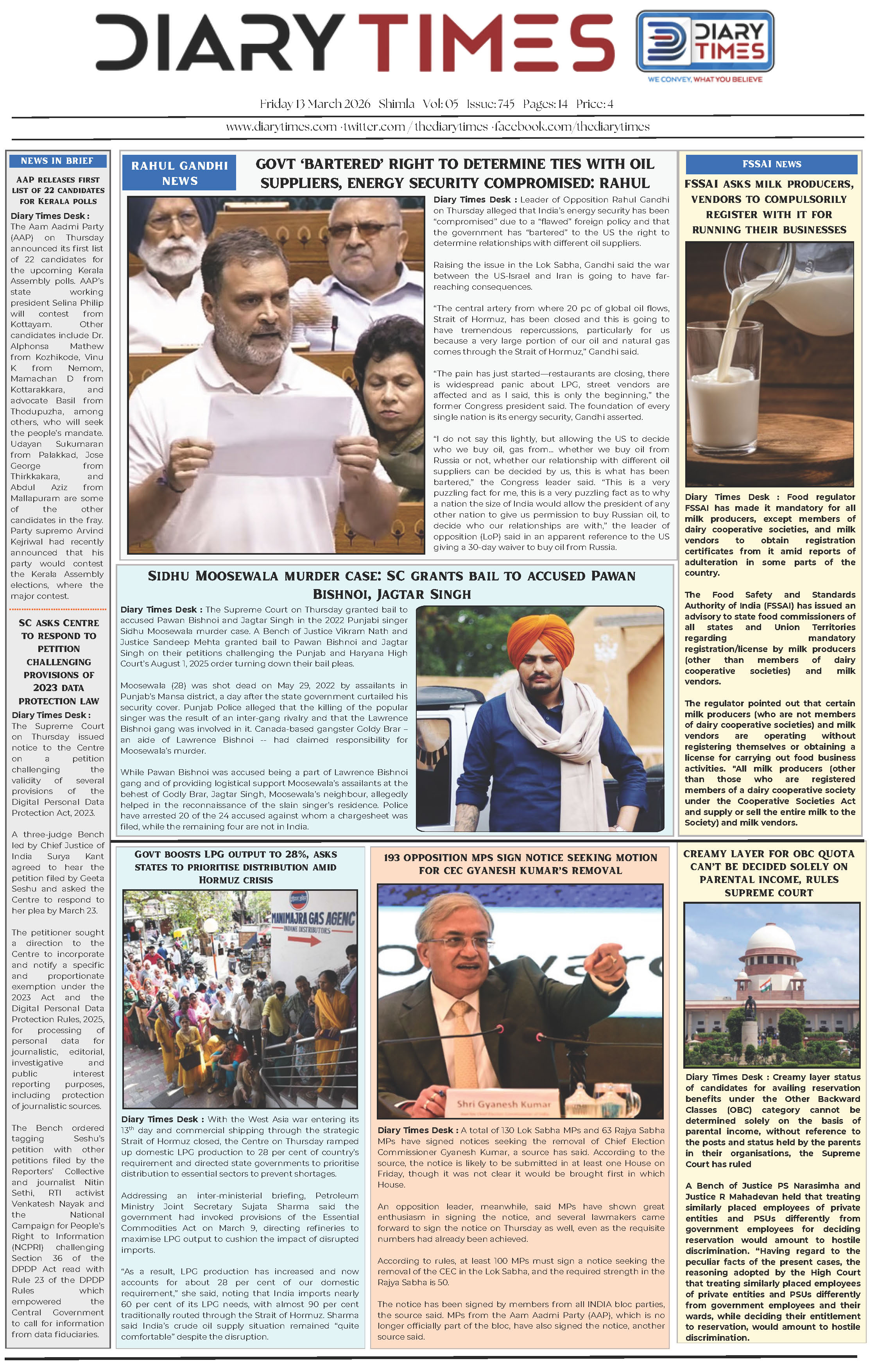 Diary Times 13 Mar 2026