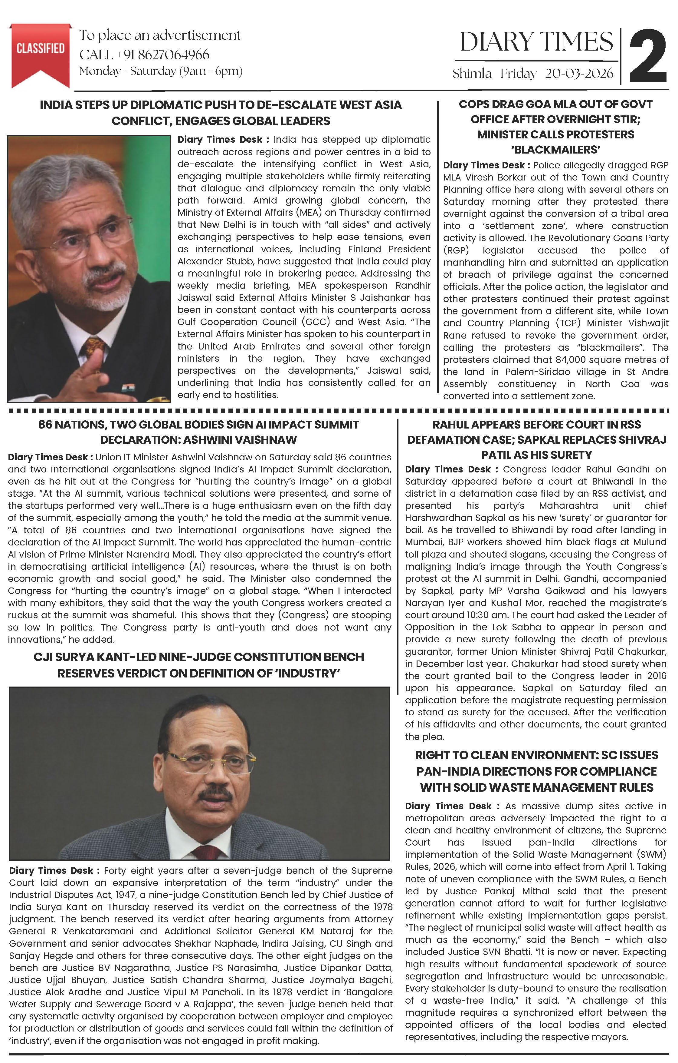 Diary Times 20 Mar 2026 Page: 2