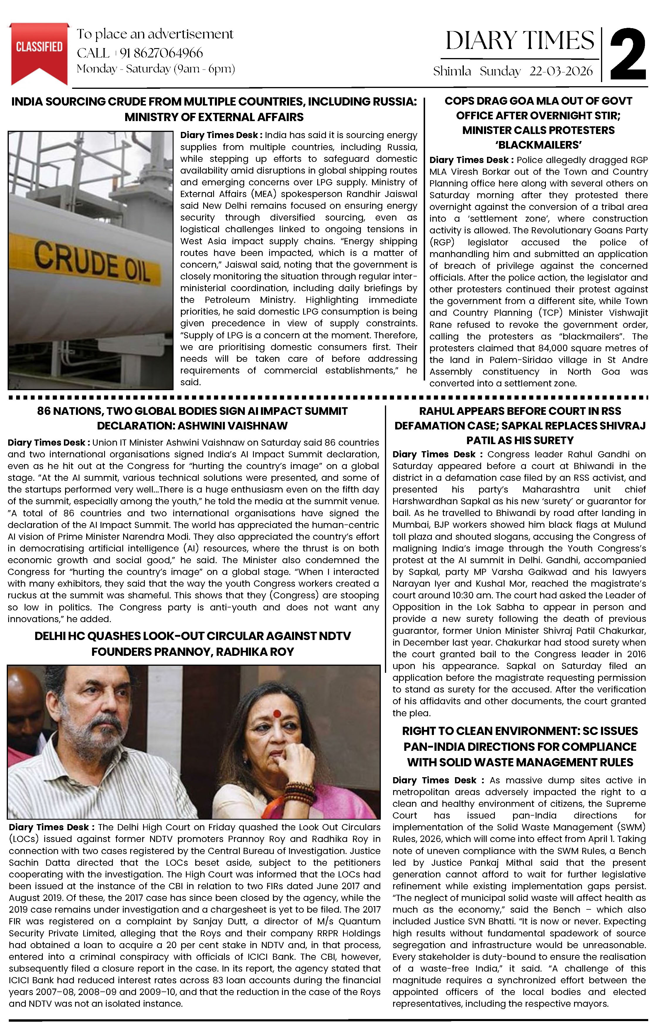 Diary Times 22 Mar 2026 Page: 2