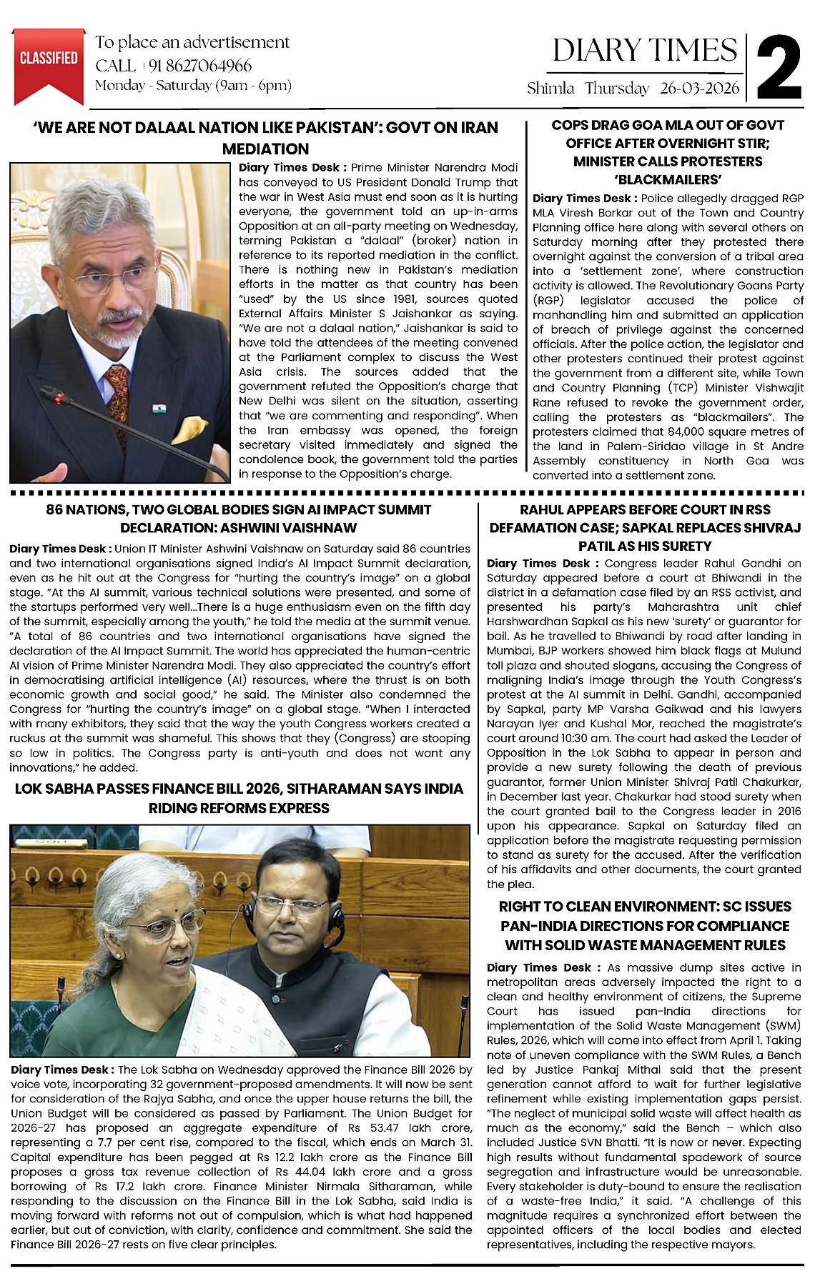 Diary Times 26 Mar 2026 Page: 2