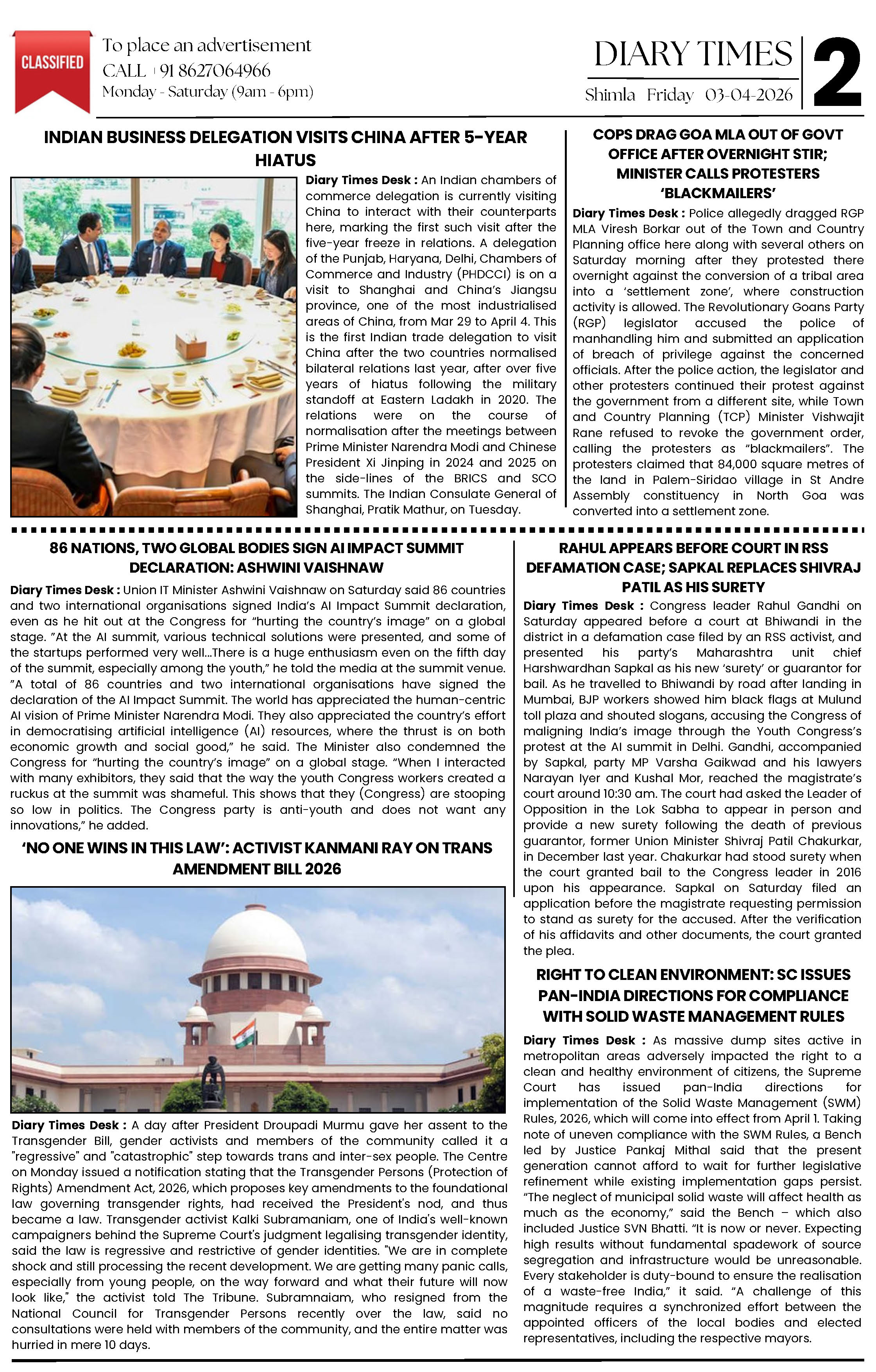 Diary Times 03 April 2026 Page: 2
