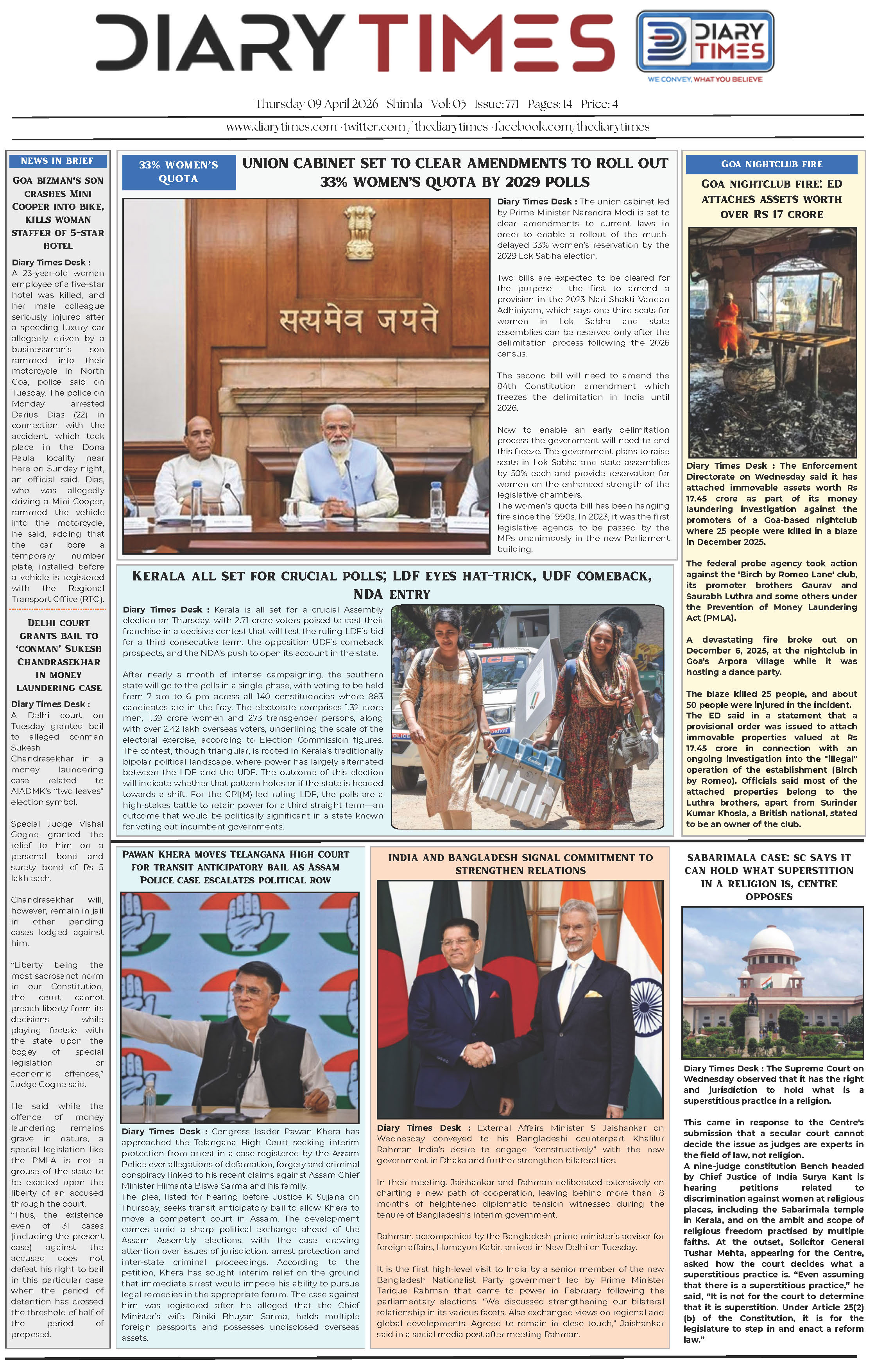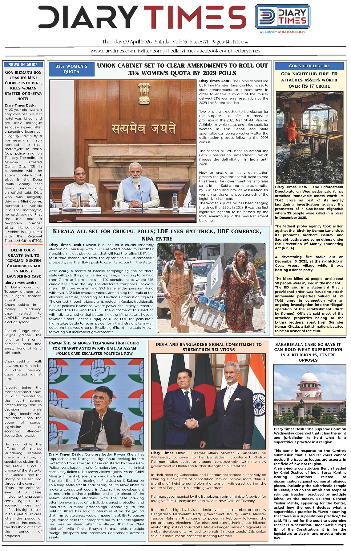 Diary Times 09 April 2026