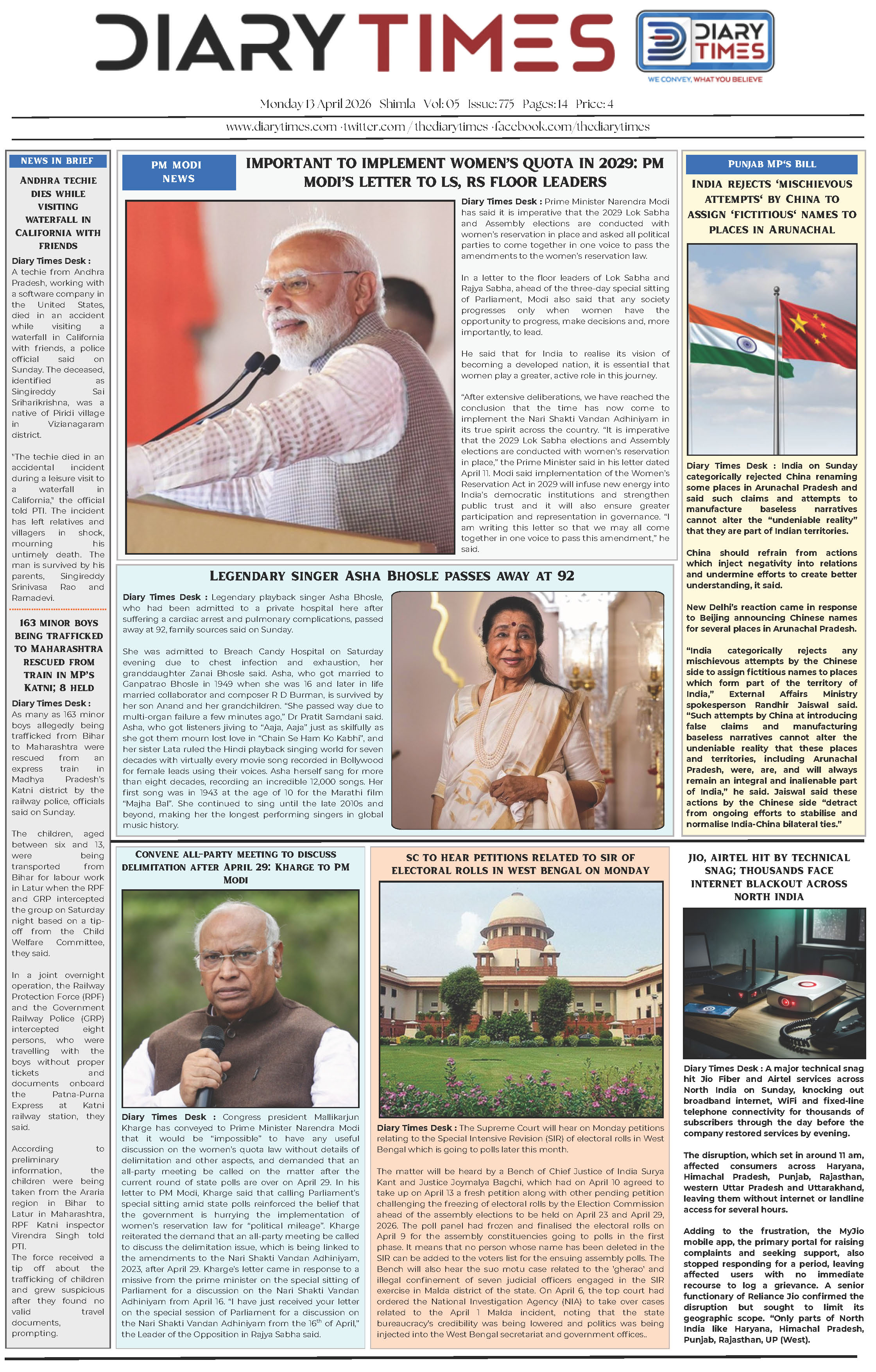 Diary Times 13 April 2026