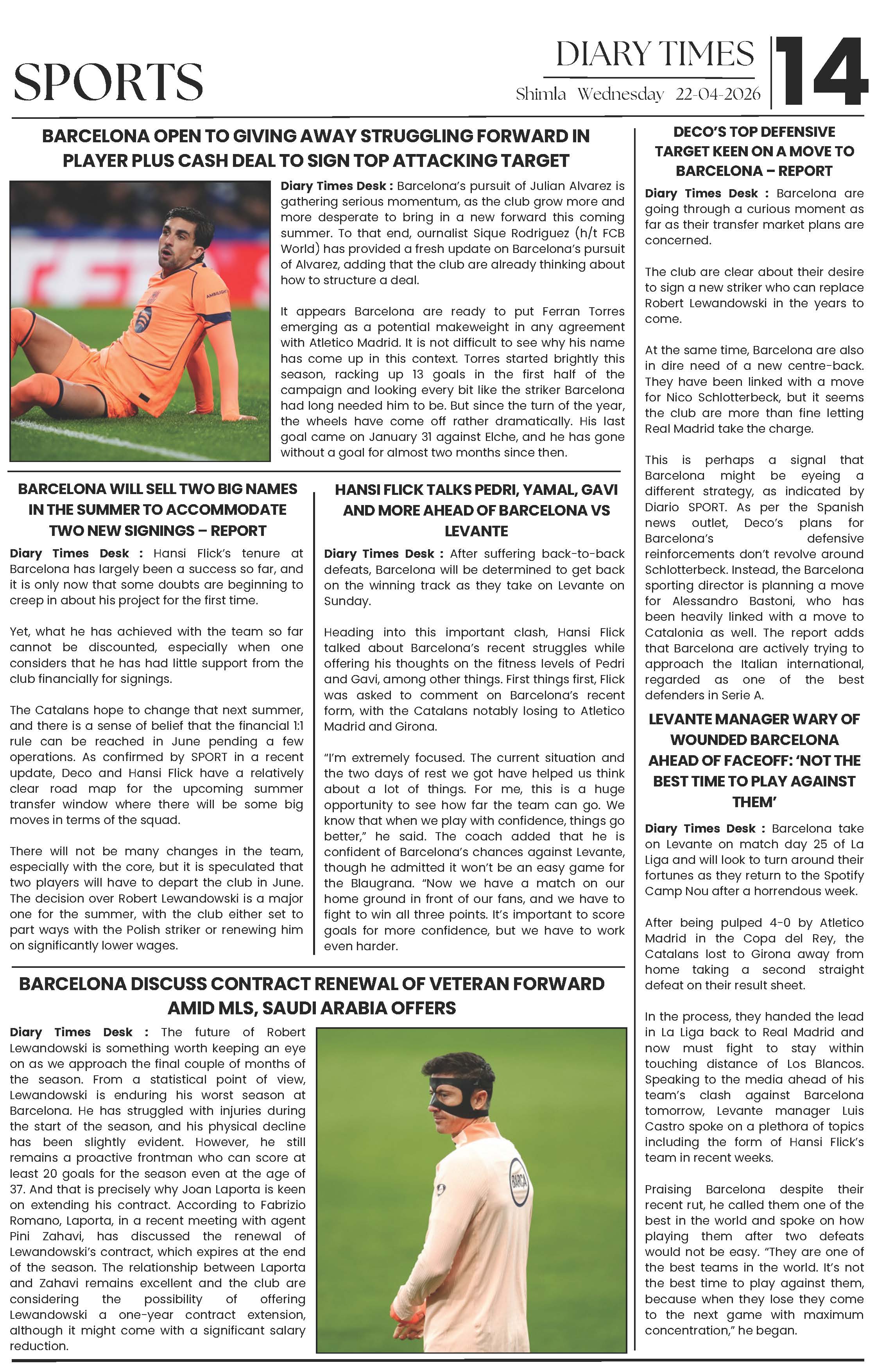 Diary Times 22 April 2026 Page: 14