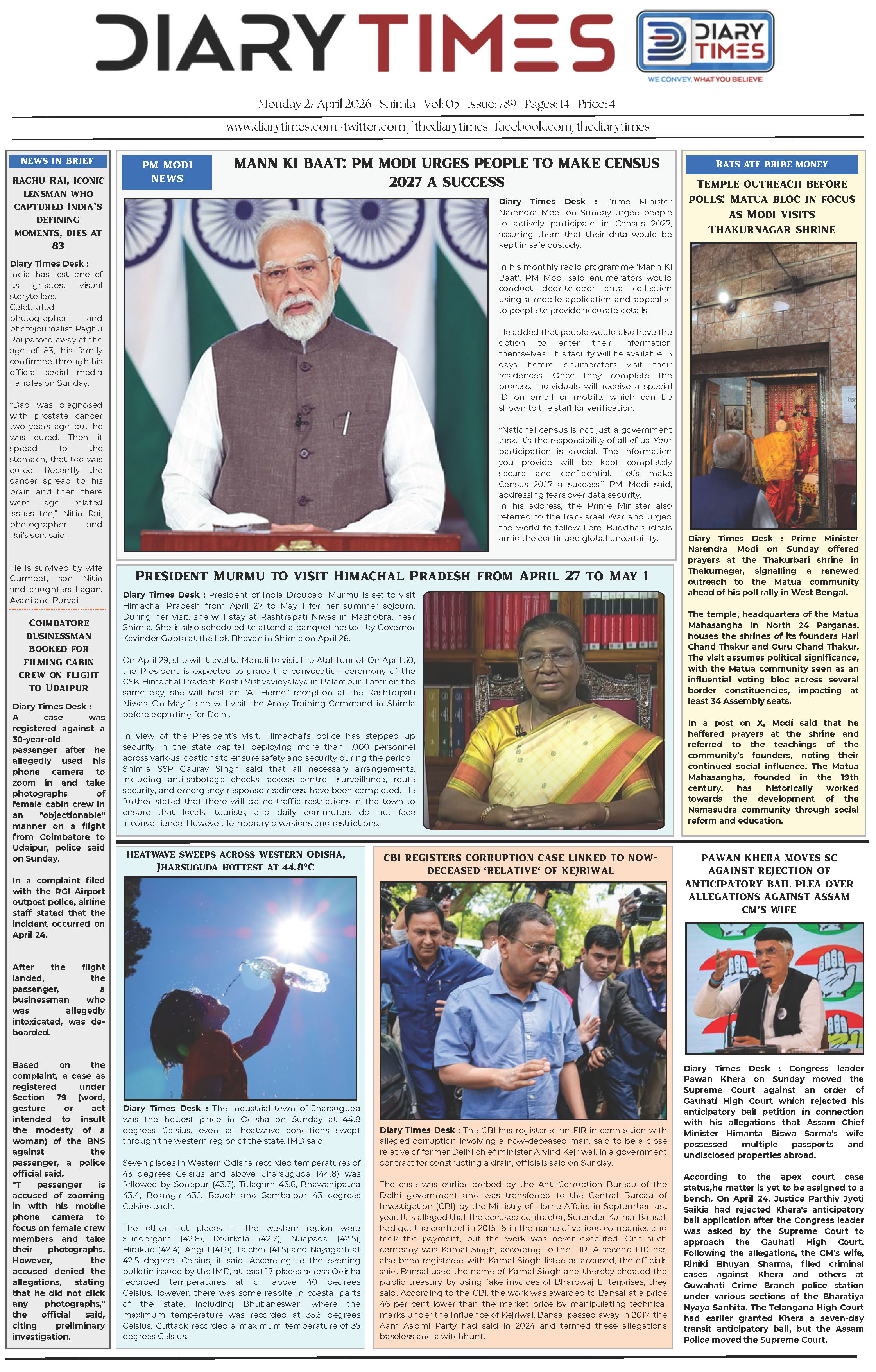 Diary Times 27 April 2026