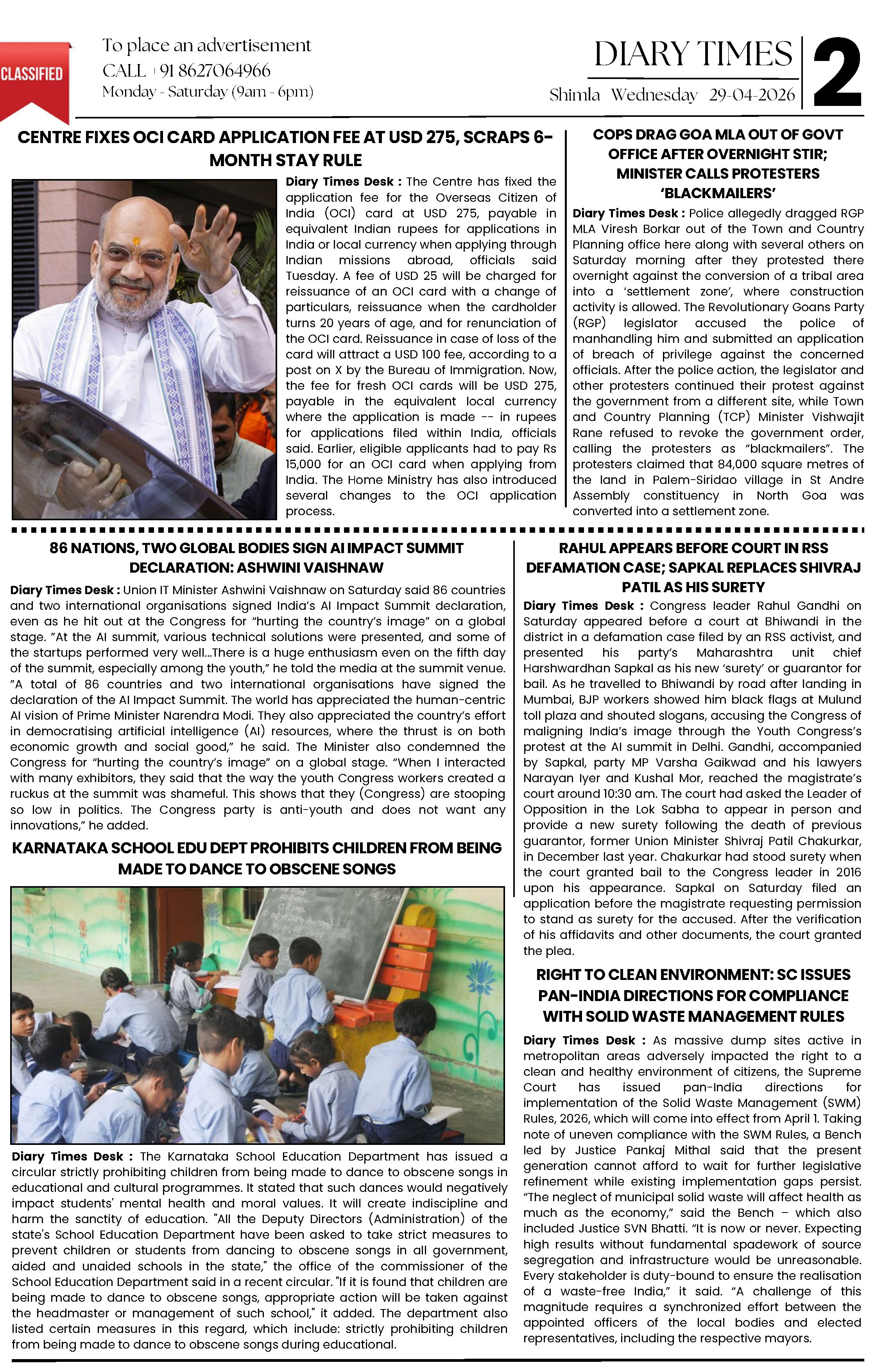 Diary Times 29 April 2026 Page: 2